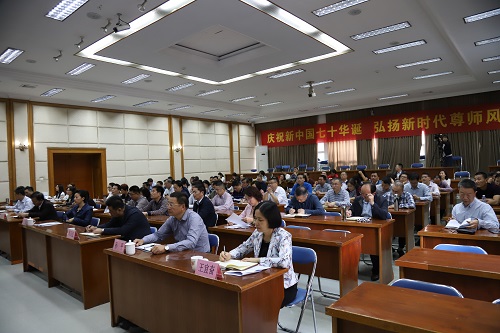 黨委書記周繼平指出,黨的十九屆四中全會是在慶祝新中國成立70周年之際、在“兩個一百年”奮斗目標(biāo)的歷史交匯點上,召開的一次十分重要的會議。全會對黨的十九屆三中全會以來中央政治局的工作給予充分肯定。全會審議通過的《中共中央關(guān)于堅持和完善中國特色社會主義制度推進(jìn)國家治理體系和治理能力現(xiàn)代化若干重大問題的決定》,是新時代堅持和完善中國特色社會主義制度、推進(jìn)國家治理體系和治理能力現(xiàn)代化的政治宣言和行動綱領(lǐng),為堅定制度自信,實現(xiàn)偉大夢想,提供了根本遵循、指明了正確方向。