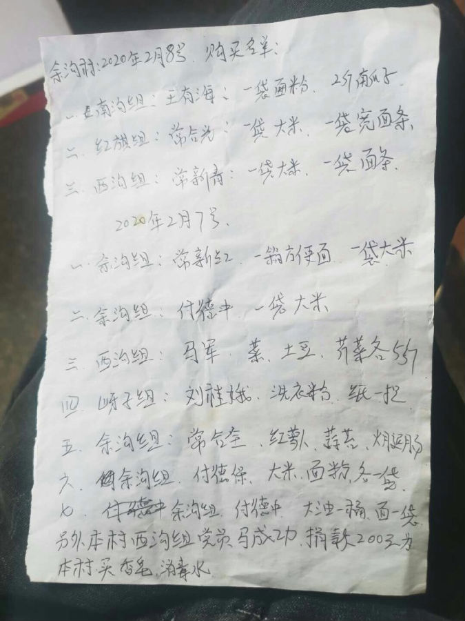 隨后疫情越來越嚴重,路封了,村封了。村民一個都出不去,生活該怎么辦?特別是春節期間,群眾生活用品需求量大。該村支部為了方便群眾生活,便想出了通過微信群聯系,村民把自己要購買的東西發到微信群內,村支部集中統計后采購發送的方法。