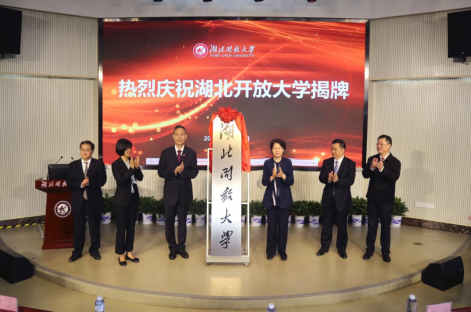 4月28日上午,湖北開放大學正式揭牌成立,湖北省副省長肖菊華,國家開放大學副校長鞠傳進,湖北省政府副秘書長盧軍,湖北省教育廳副廳長、一級巡視員黎虹,湖北開放大學黨委書記劉義,湖北開放大學黨委副書記、校長鐘毓寧出席揭牌儀式。揭牌儀式由鐘毓寧主持。