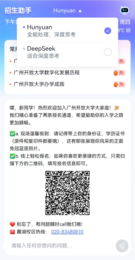 在招生工作中,DeepSeek 化身招生助手,為考生及家長提供實時、精準的招生咨詢,提升招生服務的質量與效率。