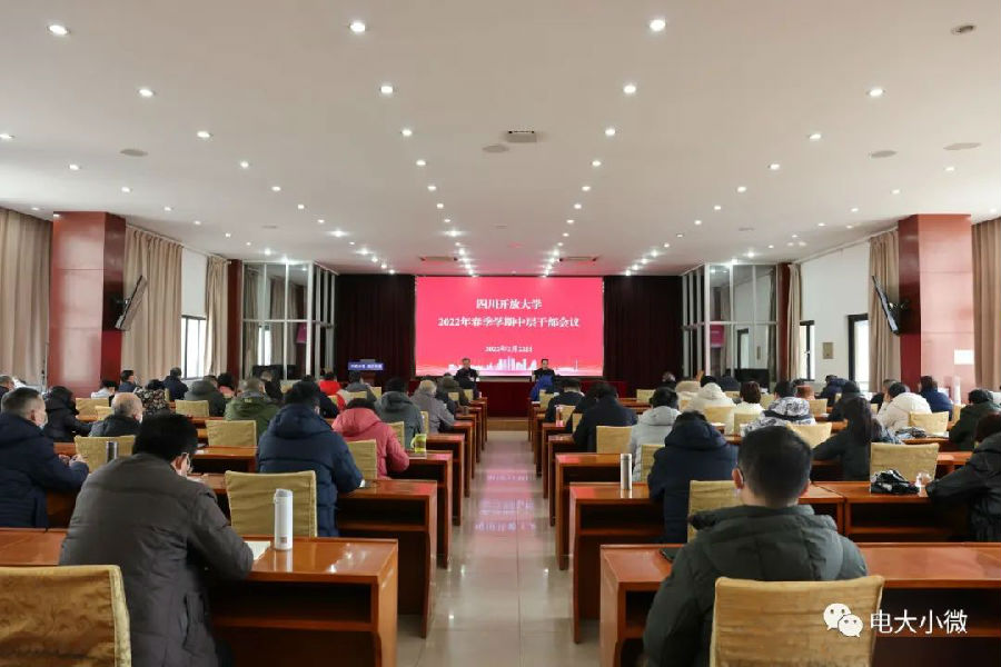 近日,四川開放大學召開2022年春季學期中層干部會議,總結2021年工作,安排布置2022年重點工作,以飽滿的精神狀態和扎實的工作作風盡快投入新學期各項工作之中,為順利完成全年目標任務,推動學校又好又快發展打下堅實基礎。全校副處級以上干部參加會議。黨委書記譚文勁主持會議。