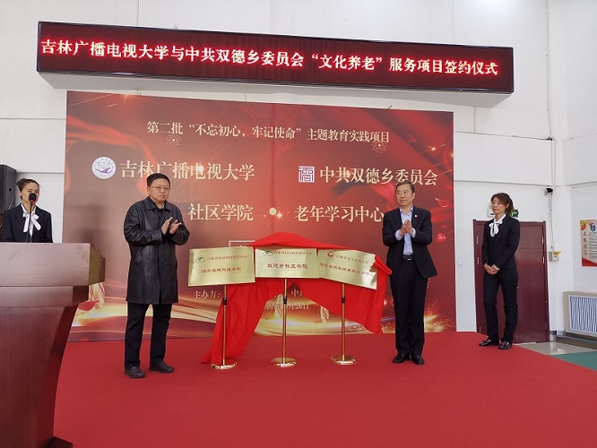 盧林和吳樹清共同為“吉林省社區教育指導中心雙德社區學院”“吉林省社區教育指導中心-社區學校”“吉林老年開放大學-老年學習中心”揭牌。儀式上進行了簽約,為雙德鄉及十三個社區分別加掛相應的教育基地牌匾。