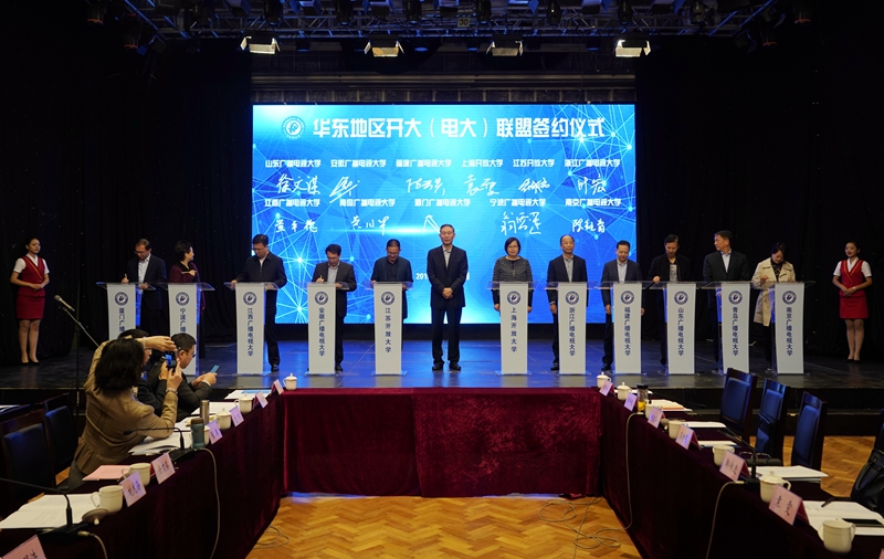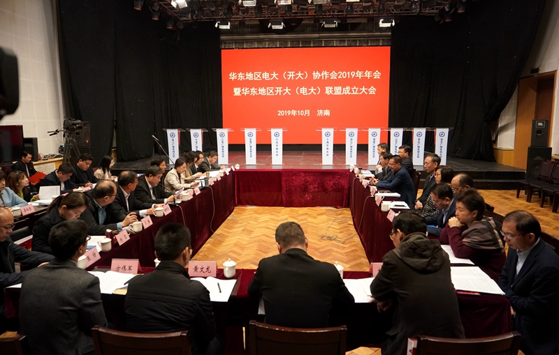10月18日,華東地區廣播電視大學(開放大學)協作會2019年年會暨華東地區開放大學(廣播電視大學)聯盟成立大會在山東電大召開。會議以習近平新時代中國特色社會主義思想為指導,交流研討電大(開大)深化改革發展良策,創新合作機制與模式,成立華東地區開放大學(廣播電視大學)聯盟,共同推進電大(開大)教育事業轉型發展。
