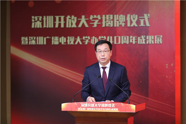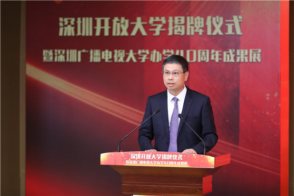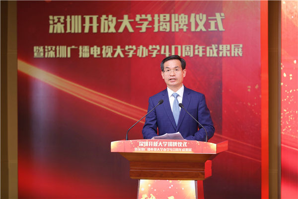 3月20日,深圳開放大學(xué)揭牌儀式暨深圳廣播電視大學(xué)辦學(xué)40周年成果展舉行。深圳市委常委、宣傳部部長王強(qiáng),深圳市人民政府黨組成員、副市長聶新平,國家開放大學(xué)黨委書記、校長荊德剛,市委教育工委書記、市教育局黨組書記、局長陳秋明,國家開放大學(xué)副校長林宇等出席活動(dòng)并為深圳開放大學(xué)揭牌。