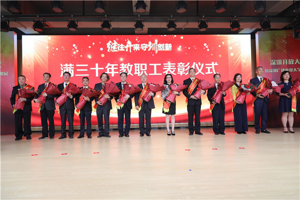 在學(xué)校工作滿三十年的教職工接受學(xué)校表彰