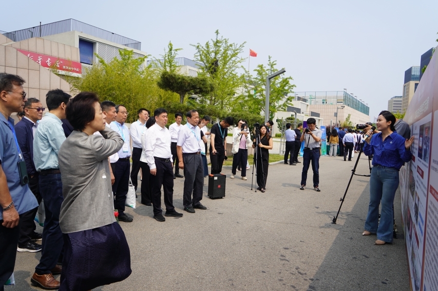 開幕式后,與會嘉賓共同參觀了山東省終身教育成果展。此次展覽特設(shè)山東開放大學(xué)展區(qū),充分展示了學(xué)校開放教育、成人教育、村(社區(qū))干部專科學(xué)歷教育、社區(qū)(老年)教育、社會培訓(xùn)五大業(yè)務(wù)板塊在服務(wù)全民終身學(xué)習(xí)方面取得的成績,與會嘉賓紛紛駐足聆聽講解,觀看展板。學(xué)校全程參與本次活動周相關(guān)工作,具體負(fù)責(zé)主題宣傳片制作、線上展覽內(nèi)容設(shè)計(jì)、線下展覽內(nèi)容審核與設(shè)計(jì)、現(xiàn)場支持服務(wù)等。
