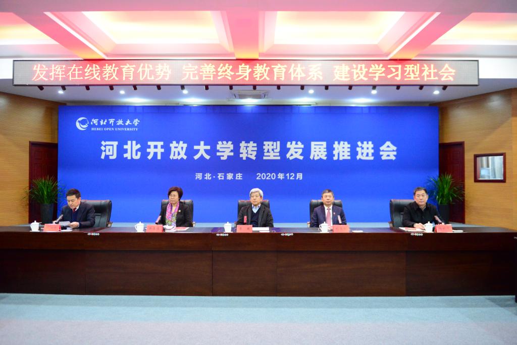 2020年12月19日,河北開放大學轉型發展推進會在學校終身教育大講堂舉行,會議采用遠程視頻會議的方式舉行,大講堂設主會場,各設區市廣播電視大學云教室設分會場。