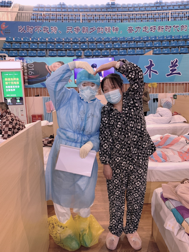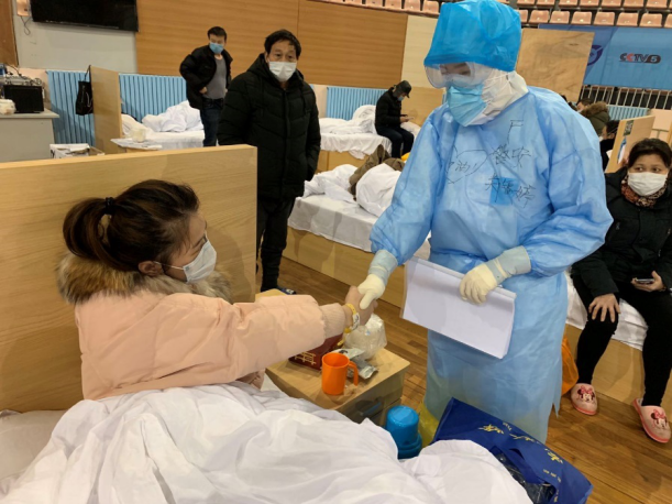 方艙醫院是由一個體育館臨時改造的,環境相對來說不是很好,但設施比較齊全。醫院分ABCDEF區,鄭錦婷被分配在F區,負責13個病人的護理,另外還要協助預檢分診工作。那天一下子收治了十七八個新病人,她不停地鋪床、安排病人、測生命體征、做記錄……
