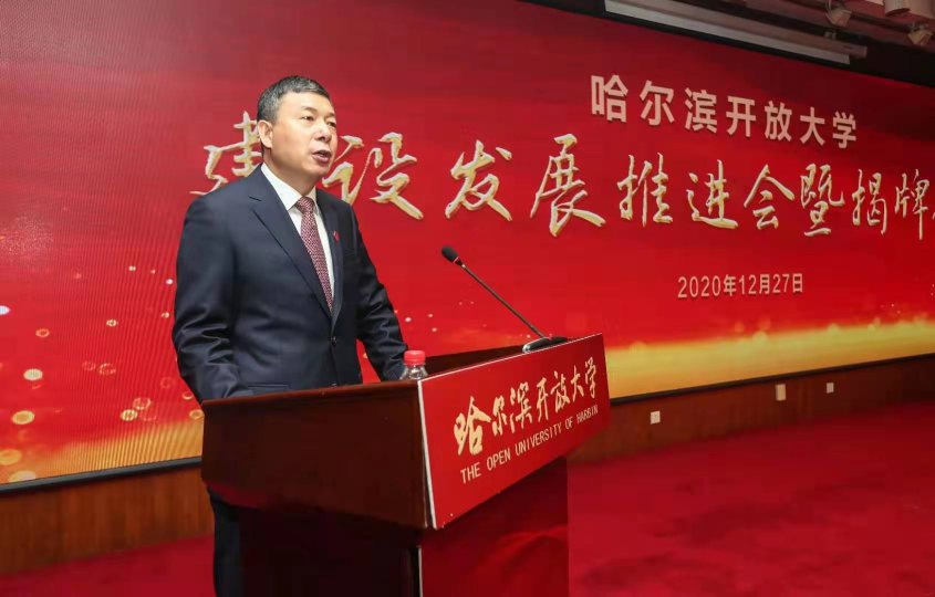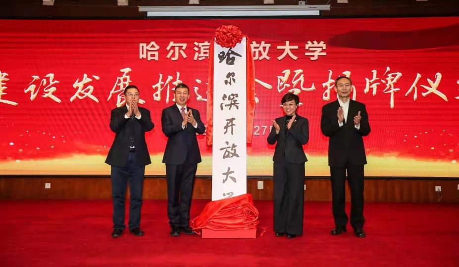 12月27日,哈爾濱開放大學建設發展推進會暨揭牌儀式在友誼宮舉行。國家開放大學黨委書記、校長荊德剛,副校長鞠傳進,哈爾濱市人民政府副市長陳遠飛,哈爾濱開放大學黨委書記張利寧等出席會議。相關領導為哈爾濱開放大學揭牌,標志著辦學60年的哈爾濱廣播電視大學正式更名。