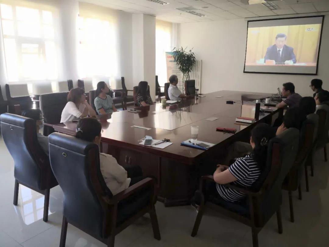 黨委書記周志,黨委副書記、校長張宗旺等校領(lǐng)導(dǎo)同志與教職工一起收看大會直播