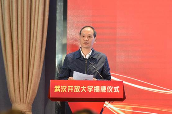 趙澤剛談到,武漢電大幾代人風雨兼程,始終堅持“規范、提質、創新”理念,牢牢把握“服務地方經濟社會發展”的辦學宗旨,建成以終身教育為龍頭、學歷教育和非學歷教育并舉、開放教育與職業教育融合、具有中心城市特色的廣播電視大學,成為湖北省高等教育體系的有機組成部分,為湖北經濟社會發展做出獨特貢獻。開放大學的揭牌標志著武漢電大走進新時代,開啟新征程。武漢開放大學要以習近平新時代中國特色社會主義思想為指導,把思想和行動統一到教育部關于開放大學綜合改革的意見上來,落實好立德樹人根本任務,走好中心城市開放大學轉型發展新道路,服務好全民學習、終身學習。省教育廳將一如既往關心支持開大的建設發展,期待武漢開大在新起點上,再接再厲,為“五個湖北”建設,為湖北“建成支點、走在前列、譜寫新篇”做出新的更大貢獻。