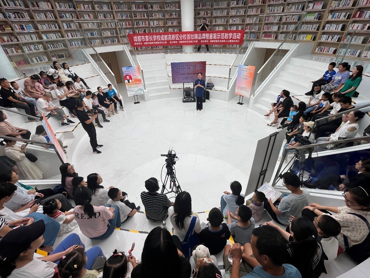 在成都市家長學校暑期示范教學活動中,首批專家導師分赴各區(市)縣開講精品示范課程,通過網絡現場直播、視頻課程回放等方式推動精品課程全網傳播。例如,天府新區家長學校組織家長和孩子赴三蘇祠博物館開展現場研學和實踐體驗活動,高新區家長學校在高新區圖書館通過親子沙龍方式分享溫馨家庭的“三個關鍵詞”,金堂縣、青白江區分別依托成都開放大學金堂學院、青白江大彎小學成立家長學校分校,并聘任首批講師團成員……截至目前,已通過專家講座、沙龍訪談、參觀研學、普法教育等方式開展示范教學活動23場,線上線下覆蓋人群超100萬人次。