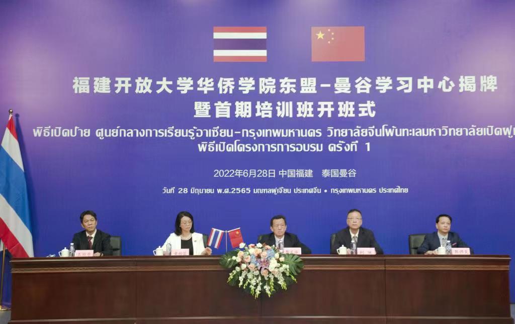 日前,福建開放大學華僑學院首個海外學習中心東盟-曼谷學習中心在泰國揭牌成立,并啟動首期泰國線下茶文化培訓班。活動通過線上線下同步在中國福建開放大學、泰國瓦萊嵐大學雙會場舉行。