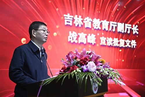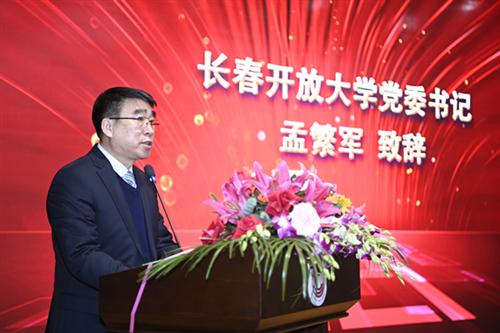 戰高峰宣讀了吉林省政府關于學校更名的批復文件,長春開放大學黨委書記孟繁軍致辭,劉向虹講話。劉向虹、賈麗娜共同為長春開放大學揭牌。