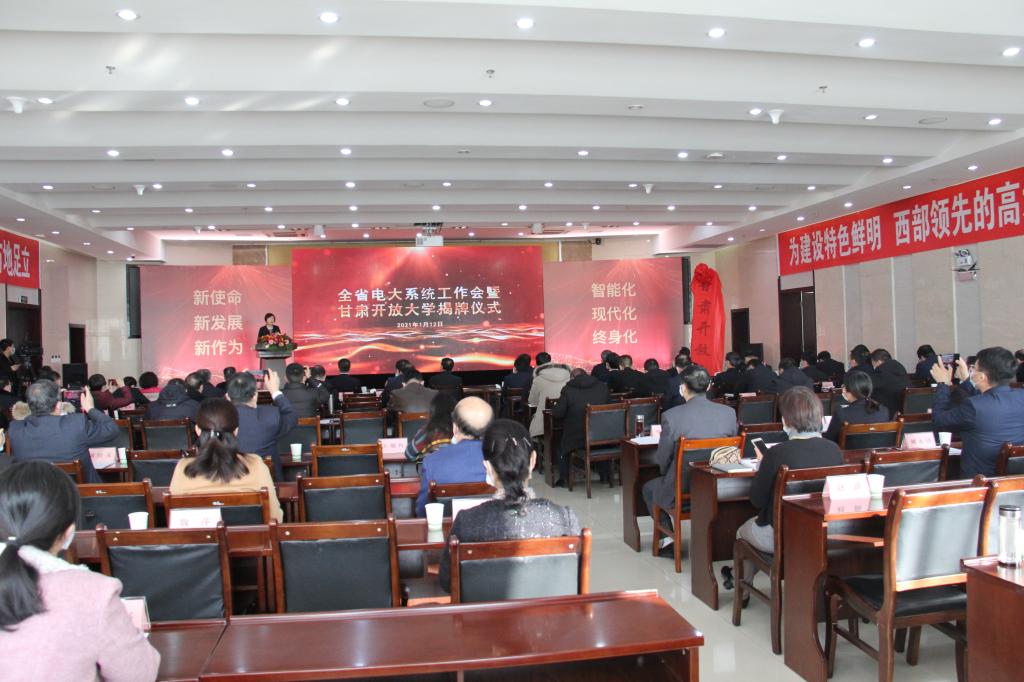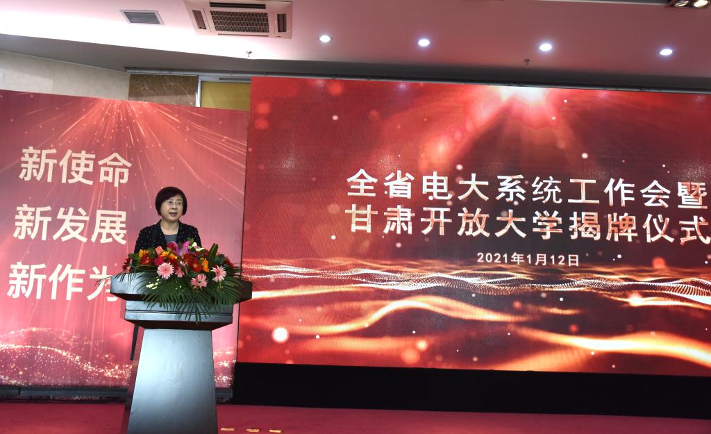 2021年1月12日,甘肅開放大學揭牌儀式在蘭州舉行,甘肅省副省長張世珍,國家開放大學副校長林宇,甘肅省人民政府副秘書長王曉陽,甘肅省委教育工委書記、省教育廳黨組書記、廳長王海燕出席揭牌儀式。