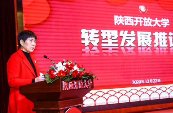 劉向虹強調,陜西開放大學的更名轉型是《國家開放大學綜合改革方案》在陜西結出的碩果,陜西開放大學辦學40多年來,累計培養本??茟眯腿瞬?/span>47萬余人,解決了兩代人的學歷補償問題,開發了陜西改革開放所需的人力資源,積累了終身學習的教育經驗,探索了新型高等教育發展之路,為陜西經濟社會發展做出了貢獻。她指出,學校要落實十九屆五中全會提出的建設高質量教育體系的要求,積極主動適應數字化、智能化、終身化、融合化教育發展趨勢,做好轉型發展;貫徹好教育部《國家開放大學綜合改革方案》,建好四個平臺,即:打造國內外具有重要影響力的終身教育平臺、打造高質量在線教育的主要平臺、建設靈活教育的重要平臺、建設對外合作的平臺。她希望學校站在新的發展起點,緊緊圍繞高質量發展主題,開拓創新、不斷進取,取得更加輝煌的成績。