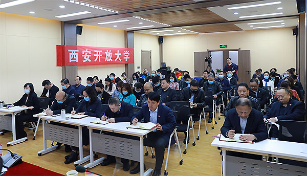 學習百年黨史,激發奮進力量。3月30日上午,西安開放大學召開黨史學習教育動員大會,深入貫徹落實黨中央、省委、市委黨史學習教育動員大會精神和工作安排,安排部署學校黨史學習教育工作。校黨委書記李彬,校黨委副書記、校長趙麗玲,校黨委委員、副校長宋軍,校黨委委員、副校長李福海,校內中層管理四級崗以上干部以及各黨支部支委參加了會議。會議由趙麗玲主持。