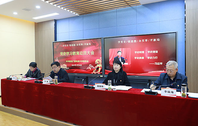 李彬做動員講話時強調了學校開展黨史學習教育的重要意義,既是落實學校立德樹人根本任務的應有之義,也是全面推進新時代學校黨的建設的內在要求。他要求大家要深入學習理解學校黨史學習教育工作的安排部署,掌握工作實質,努力踐行落實,并就開展好黨史學習教育,提出三方面的具體意見:一是提高政治站位,深刻領會黨史學習教育的重大意義。黨史學習教育有著重大而深遠的歷史意義、現實意義和戰略意義,是用習近平新時代中國特色社會主義思想武裝頭腦的重大舉措;是推進黨的建設偉大工程的迫切需要;是保持黨同人民群眾血肉聯系的內在要求。二是突出重點,準確把握黨史學習教育的目標要求。黨史學習教育的重點是廣大黨員干部要把握好學習教育的目標要求、重點內容和精神實質,高標準高質量推進,學出成效,干出成果。三是加強組織領導,確保黨史學習教育責任落實。全體黨員干部要嚴格落實黨史學習教育各項工作安排,既要深入開展學習研討,又要強化督導推進,還要抓好學踐結合。