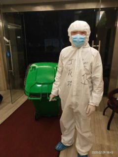 隔離點性質(zhì)特殊,為了減少人員流動帶來感染可能性,隔離區(qū)只有送餐和消殺、醫(yī)務人員可以進出,因此送餐組和消殺組各位成員身兼數(shù)職,搭起了患者與家屬間的橋梁,兼職成為了特殊的“快遞員”,幫助他們傳遞CT片、藥品、生活日用品等。多技傍身的陳華不僅是“快遞員”,還憑借早年考得中級電工操作證的經(jīng)驗當起了臨時“電工”。2月13日,有兩個房間跳閘,電視和插座都不能用,房內(nèi)患者情緒變得很急躁。陳華和電工取得聯(lián)系,詳細了解清楚配電柜位置和線路分配走向后,幫忙排除了故障。房間很快恢復供電,患者連聲向他道謝,簡單的言語令陳華深感欣慰。“此刻自己的工作得到認可,突然感覺不到累了!祝愿所有病人早日康復!我們也好回家與親人團聚”。