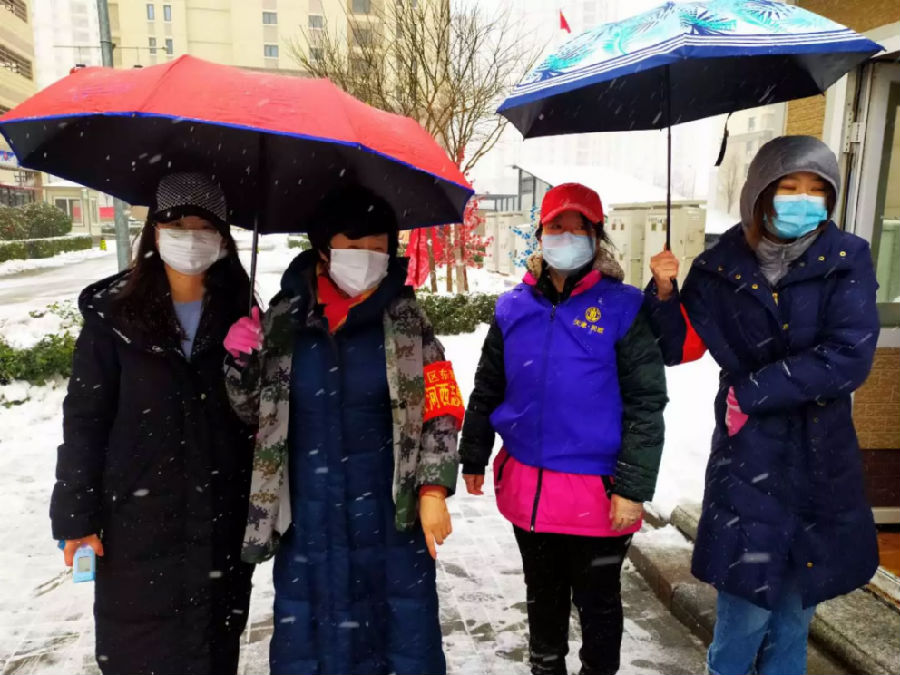 無論風里雪里,哪怕全身已經凍透,她一直堅守在社區出入口,為居民測量體溫,為來津返津人員辦理登記,嚴防死守,牢筑社區防疫屏障!