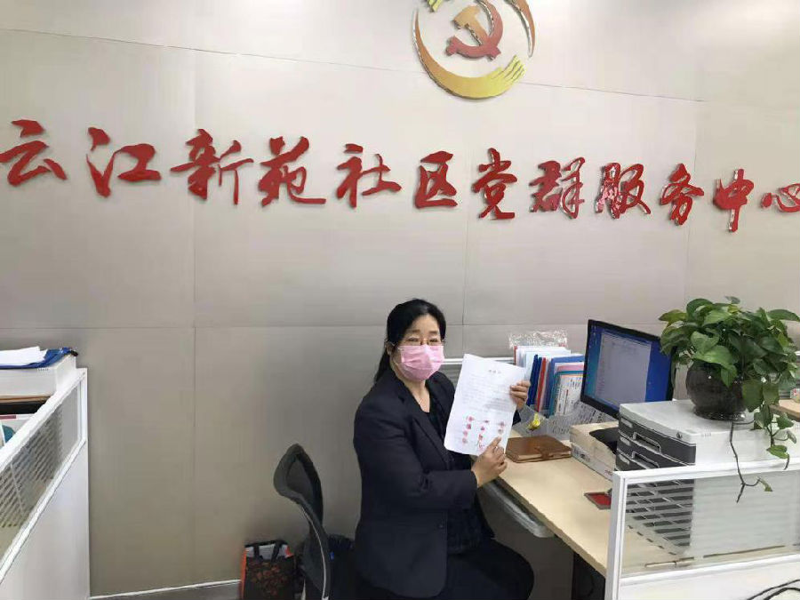 這是一份請戰書,寫下這份請戰書的人是王蕓,她是天津分部2018秋文法學部社會工作專業本科學員,河西區東海街云江新苑社區黨總支書記、居委會主任。在新冠病毒肺炎防控戰役中,王蕓集結社區全體工作人員、物業人員、黨員志愿者等多方力量開展地毯式排查,加強防疫宣傳,嚴守社區出入口,服務社區居民。