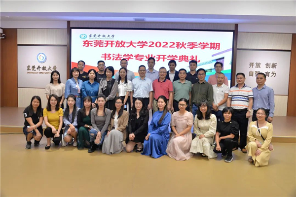 10月15日上午,東莞開放大學(xué)舉辦首屆書法專業(yè)座談會。活動采取“線上線下”相結(jié)合的方式,國家開放大學(xué)人文教學(xué)部副部長胡正偉、藝術(shù)學(xué)院副院長任天淳、書畫藝術(shù)教育研究院常務(wù)副院長唐應(yīng)山、藝術(shù)教育中心副主任徐航、書法專業(yè)主持教師牛濤、張曼瑩、楊耀、肖婷婷等在北京以線上直播方式參加會議,東莞開放大學(xué)副校長張念偉、教務(wù)處主任廖繼標(biāo)、美術(shù)教育中心主任喻涌波、首屆書法專業(yè)本科班班主任張靈老師及全體同學(xué)在主會場參加會議。