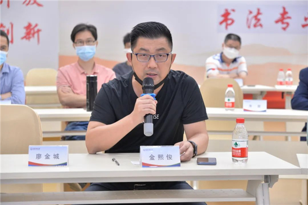 任天淳并表示東莞開放大學(xué)首次招生情況十分樂觀,作為藝術(shù)類的特色專業(yè)來說是很不錯的一個成績。隨后,任院長從專業(yè)師資、學(xué)習(xí)媒體、教師團隊、實施團隊四個方面對書法專業(yè)建設(shè)做了介紹。