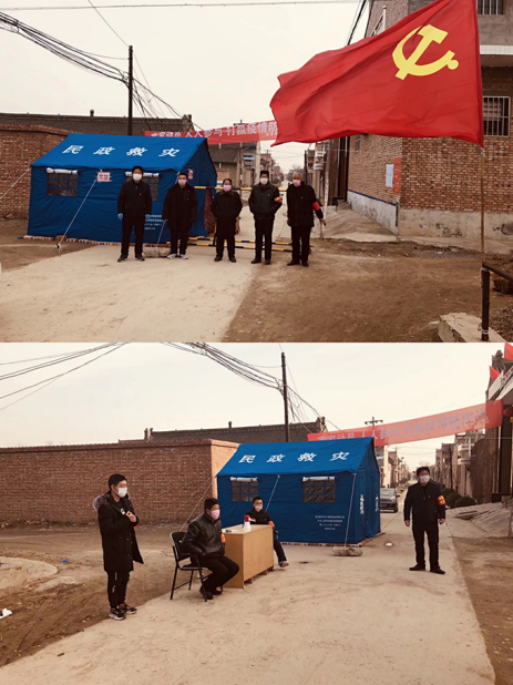 郝武杰帶領(lǐng)村“兩委”干部和黨員在村口執(zhí)勤,嚴(yán)防值崗第一線。