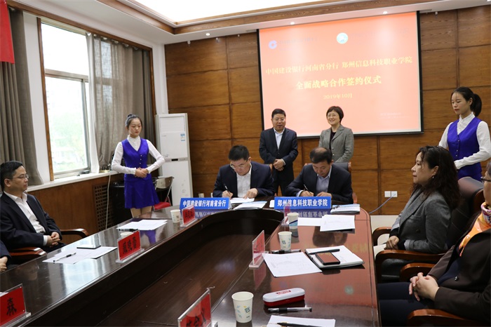 2019年10月22日,河南電大與中國建設銀行河南省分行簽署全面戰略合作協議。河南電大校長趙繼紅,副校長馬東斌、李小明,建行河南省分行行長、黨委書記石永栓,副行長黃興宏,以及雙方相關單位或負責人參加儀式。簽約儀式由馬東斌主持。