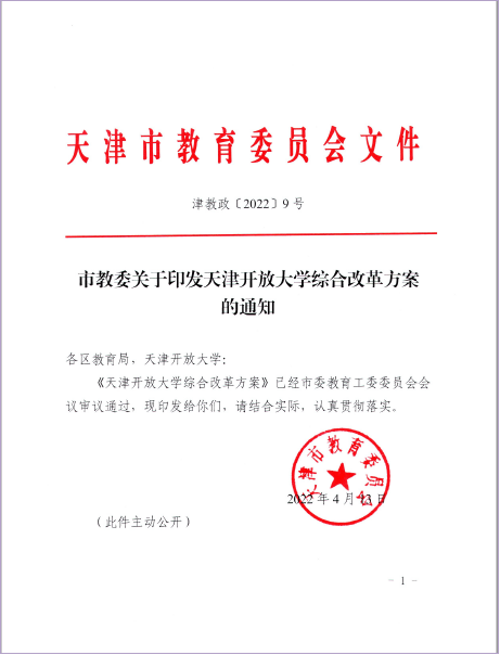 近日,天津市教育委員會印發《天津開放大學綜合改革方案》。這是為落實教育部《關于印發國家開放大學綜合改革方案的通知》(教職成〔2020〕6號)和天津市《天津市人民政府關于同意天津廣播電視大學更名為天津開放大學的批復(津政函【2020】170號)要求,加快推進天津開放大學轉型發展而采取的一項重要措施。