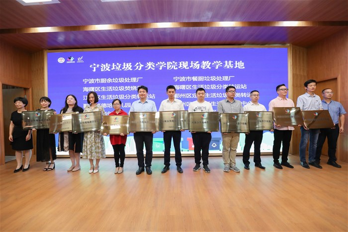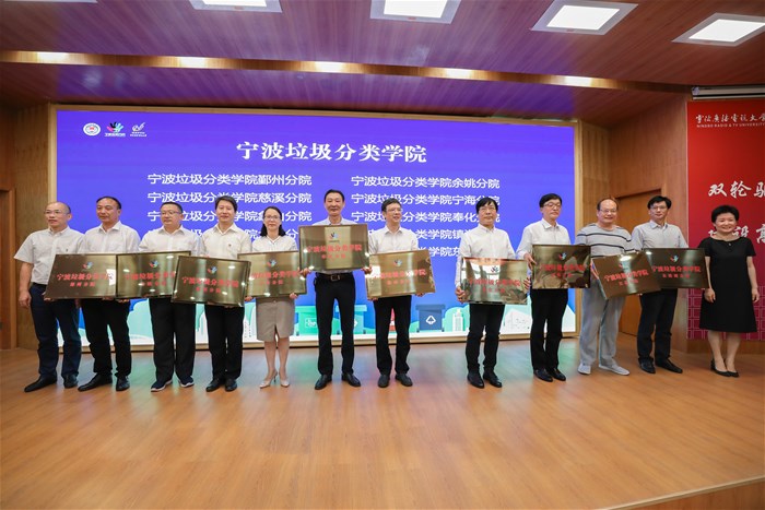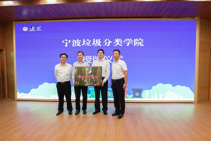 市人大常委會副主任王建社,國家開放大學黨委副書記劉臣,市綜合行政執法局局長鄭一平,寧波電大黨委書記黎群、校長翁雪蓮出席儀式。王建社、劉臣向寧波垃圾分類學院授牌。現場還掛牌成立了寧波垃圾分類學院鄞州、余姚、慈溪、寧海、象山、奉化、北侖、鎮海、江北、東錢湖10大分院,以及首批 11個垃圾分類現場教學基地。