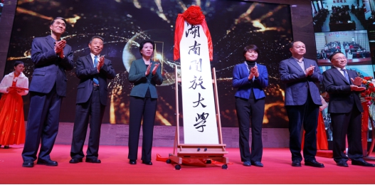 王瑰曙宣讀了《湖南省人民政府關于湖南廣播電視大學更名為湖南開放大學的批復》,烏蘭、周為、劉臣、鄭建新、陳建民、彭元共同為“湖南開放大學”揭牌。