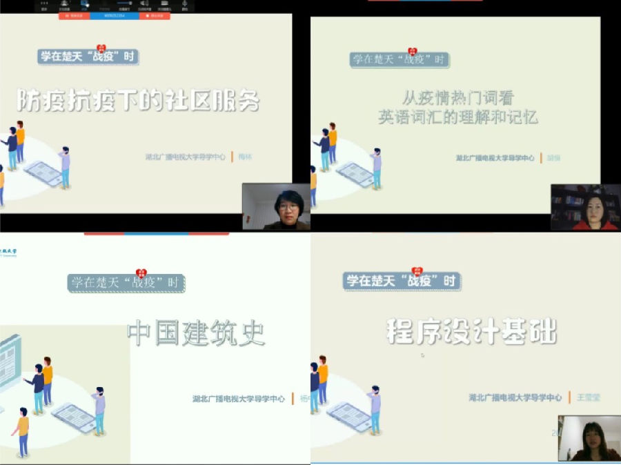依托國家開放大學的技術支持,湖北分部本學期部署了600余講云教室直播課。各地市州教學點通過網絡進行教學安排,大力開展直播教學輔導,引導學生在家觀看直播教學和開展網上學習。