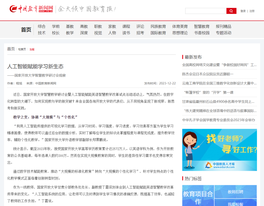 【中國教育報】人工智能賦能學習新生態——國家開放大學智慧教學研討會觀察