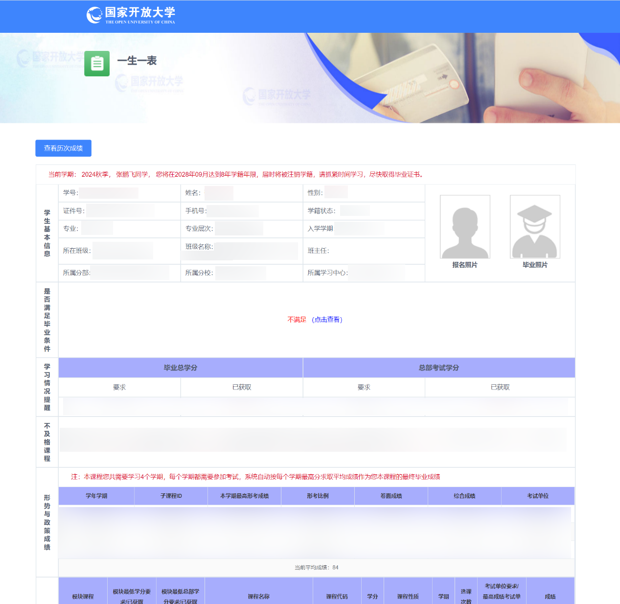 “一生一表”以數(shù)字賦能學(xué)生自主服務(wù),制作學(xué)生成長檔案,全面整合了學(xué)習(xí)者的個(gè)人資料、課程、成績和分部聯(lián)系方式等信息,增強(qiáng)了學(xué)生的學(xué)習(xí)獲得感和歸屬感。學(xué)習(xí)者能夠?qū)崟r(shí)掌握自己的學(xué)習(xí)進(jìn)度和成績,有助于激發(fā)學(xué)生自主學(xué)習(xí)意識(shí),增強(qiáng)自我監(jiān)督和管理能力。試點(diǎn)上線以來,“一生一表”已吸引517598位用戶訪問,總訪問次數(shù)達(dá)985984次。