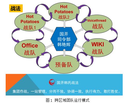 團隊基本上以實踐模塊為單位,分為5個戰隊,每個戰隊基本由3三位老師組成,設一組長。我們的口號是“集團作戰,一站管理,分而不獨,協調一致,執行有力,敢打勝仗”。通過QQ群、WIKI、電話、郵件等技術手段,圍繞國家開放大學總部,各戰隊密切配合,共同完成跨區域、一站式的團隊輔學。