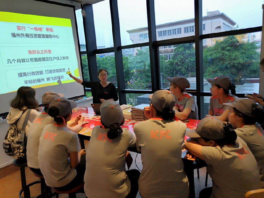 “送學(xué)入企業(yè)”,深入貫徹落實《關(guān)于深化產(chǎn)教融合的若干意見》,在省、市“職工求學(xué)圓夢計劃”框架下,圍繞“互聯(lián)網(wǎng)+教育”與“互聯(lián)網(wǎng)+產(chǎn)業(yè)”,探索教育鏈、人才鏈與產(chǎn)業(yè)鏈、創(chuàng)新鏈的深度融通模式,在百勝設(shè)立“福建廣播電視大學(xué)教學(xué)實踐基地”,為該企業(yè)1萬余名員工提供非學(xué)歷培訓(xùn)和學(xué)歷教育一體化教育服務(wù),并利用終身教育學(xué)分銀行機制,為員工的成長提供終身教育指導(dǎo)服務(wù),實現(xiàn)不脫產(chǎn)、不離崗提升學(xué)歷層次、提高崗位技能水平。同時認(rèn)真開展“三全育人”,選派思政教研室?guī)ь^人、骨干教師深入百勝(福州)餐飲有限公司、順豐速運公司等企業(yè)開展習(xí)近平新時代中國特色社會主義思想系列宣講活動。