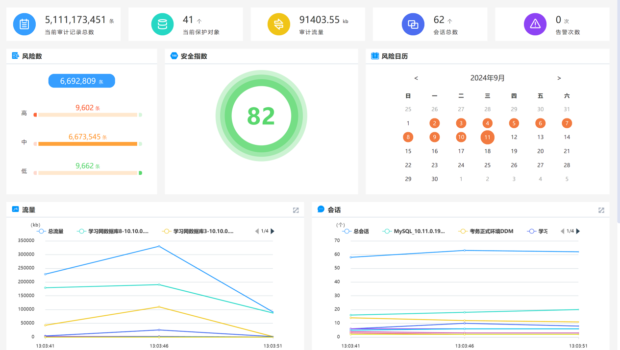 安全審計(jì)精準(zhǔn)監(jiān)控,強(qiáng)化數(shù)據(jù)安全防線。通過數(shù)據(jù)庫安全審計(jì)平臺,可實(shí)現(xiàn)數(shù)據(jù)操作審計(jì)、數(shù)據(jù)庫行為異常檢測和預(yù)警、數(shù)據(jù)安全風(fēng)險(xiǎn)評估和報(bào)告,以及敏感數(shù)據(jù)訪問監(jiān)控,累計(jì)監(jiān)控?cái)?shù)據(jù)操作達(dá)51億條。數(shù)據(jù)庫安全審計(jì)平臺能夠自動識別流量中的敏感數(shù)據(jù),從源頭處有效加強(qiáng)學(xué)校數(shù)據(jù)安全管理,從而促進(jìn)數(shù)據(jù)開發(fā)利用、保障學(xué)校數(shù)據(jù)安全、保護(hù)個人和學(xué)校的合法權(quán)益。
