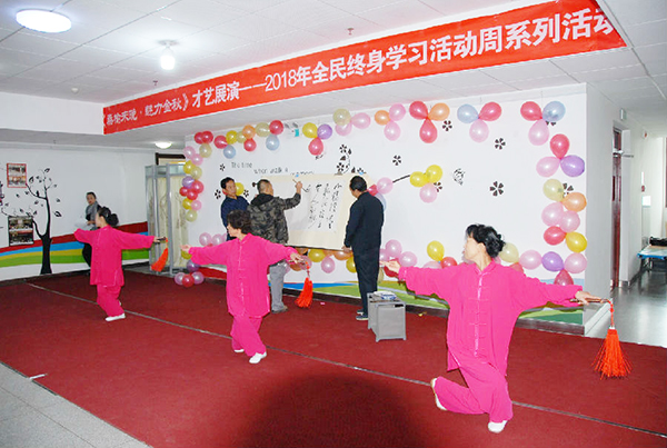演出形式多樣、精彩紛呈,節目達30個之多,既有慷慨激昂的配樂詩朗誦、輕快優美的舞蹈、低沉悠揚委婉的葫蘆絲演奏、嫻熟靈動的柔力球操,又有獨唱、二重唱、小合唱,更有傳承著中華民族博大精深文化的太極功夫表演、甘肅著名書法家書法作品的現場展示及書法絕活表演。每一個參演節目,每一個表演者都盡情歌頌贊美了偉大祖國及改革開放40年來的發展成果,歌頌贊美了終身學習理念帶給我們的幸福生活。