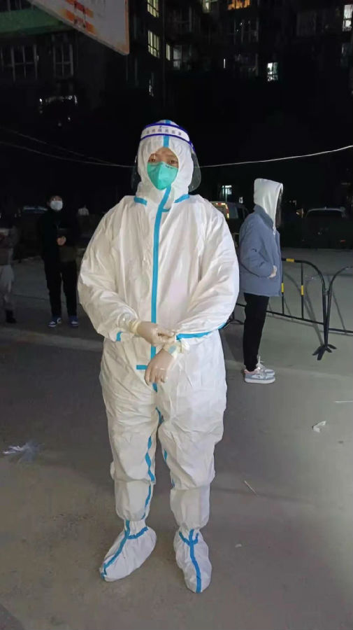 2021年12月27日,我校教師段林超在居住社區作為志愿者參與西安市新一輪核酸檢測工作。