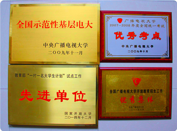 ——全國電大“信得過考點”、全國首批“示范性基層電大”、全國電大“優秀招生集體”、“教育部‘一村一名大學生計劃’”先進單位、“青島市精神文明標兵單位”等。