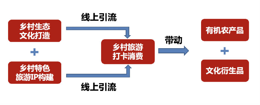 在對長溪村的項目培育過程中,陳亞薇帶領的團隊決定以鄉村文化為發展視角,以鄉村特色和文化為立足點,采用“一對接+兩挖掘+三渠道”的幫扶模式,即積極對接鄉村旅游合作社,深度挖掘鄉村獨有特色和文化,通過線上商城、移動新媒體、互聯網分銷三大渠道,打造線上鄉村文化爆點和鄉村特色IP,實現國家大力提倡的“一村一品,一村一韻”新農村建設,引流線上粉絲至實地旅游和打卡消費,以鄉村旅游同時帶動相關農產品和文化衍生品的銷售,最終實現農民提質增收、鄉村文化傳承與鄉村振興的多方共贏效應。