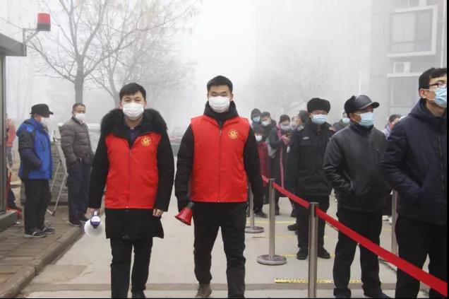 冒著冷風,志愿者們來回奔波,負責維持現場秩序、搬運防疫物資、保證安全間隔、關注小孩和老人的突發狀況、幫助打開健康碼……