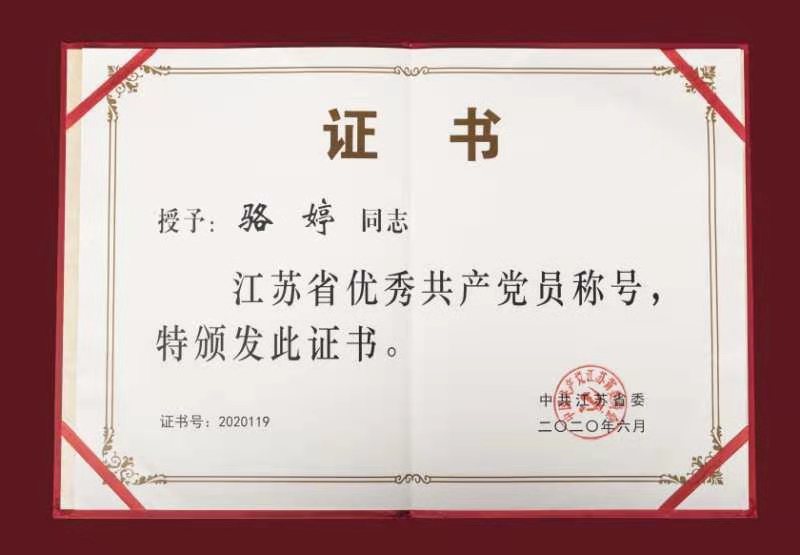 人物簡介:駱婷,女,徐州市鼓樓區鼓樓花園社區黨委書記、居委會主任,2019年9月至今,就讀于國家開放大學江蘇分部徐州學習中心老年服務與管理專業。2020年6月,被江蘇省委表彰為“江蘇省優秀共產黨員”,2020年9月,在全國抗擊新冠肺炎疫情表彰大會中,被中共中央授予“全國優秀共產黨員”稱號,被中共中央、國務院、中央軍委授予“全國抗擊新冠肺炎疫情先進個人”稱號。