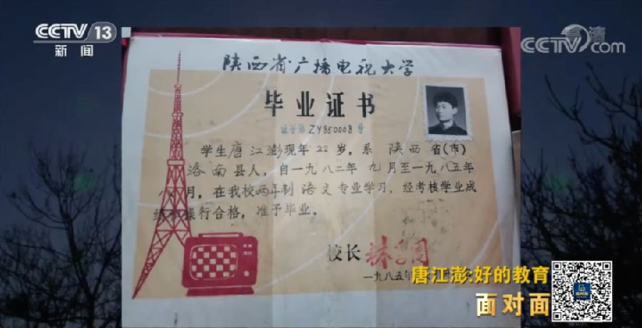 三年時間,唐江澎自學了電大的課程,取得了中文大專的學歷。后來,他又用兩年的時間到陜西教育學院進修,獲得了中文本科的學歷。