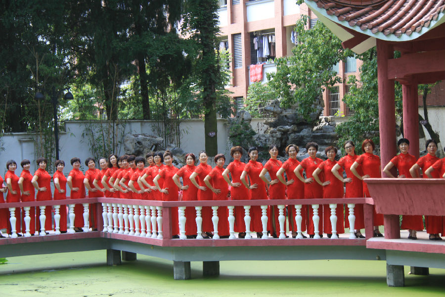 “模特”們穿著紅色的旗袍、拿著粉色的小傘、踩著高跟鞋、跟隨音樂的節拍漫步在幽雅的校園里,成為麗水廣播電視大學里一道亮麗的風景線。那輕盈的步伐、妙曼的身姿,一顰一笑都充分展示出女性的神韻與風采。