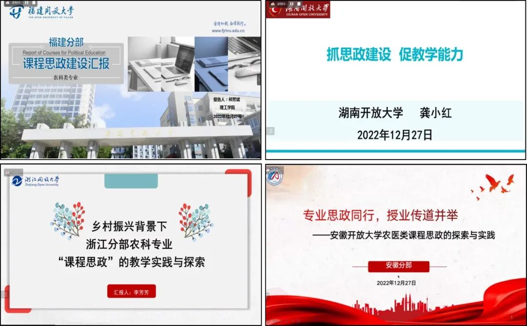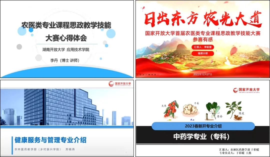 為進(jìn)一步落實(shí)國家開放大學(xué)學(xué)歷教育“創(chuàng)優(yōu)提質(zhì)”戰(zhàn)略,促進(jìn)學(xué)科、專業(yè)高質(zhì)量發(fā)展,提升農(nóng)醫(yī)科類專業(yè)課程思政教育教學(xué)水平,國家開放大學(xué)農(nóng)林醫(yī)藥教學(xué)部(鄉(xiāng)村振興學(xué)院)于2022年12月27日通過線上線下相結(jié)合的方式開展了農(nóng)醫(yī)科類專業(yè)教學(xué)工作暨課程思政教學(xué)技能集中研討活動(dòng)。
