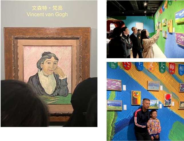 “世界名畫訓練營”首次將美育課堂開放并延伸到公共文化場所,還與遇見博物館聯合開展“邊看展邊學畫”活動,本次展出的學生作品就是該活動的成果。主題活動展出了莫奈、梵高和現代主義大師的真跡,以及42件學員作品。完成學生作品的學員最小的年僅3歲,最大的60多歲,展出的均是他們的第一件油畫作品。豐富多彩的藝術作品令與會人員紛紛感嘆美育的無限可能,體現了“在線油畫公社”作為新時代終身學習品牌的重要價值。