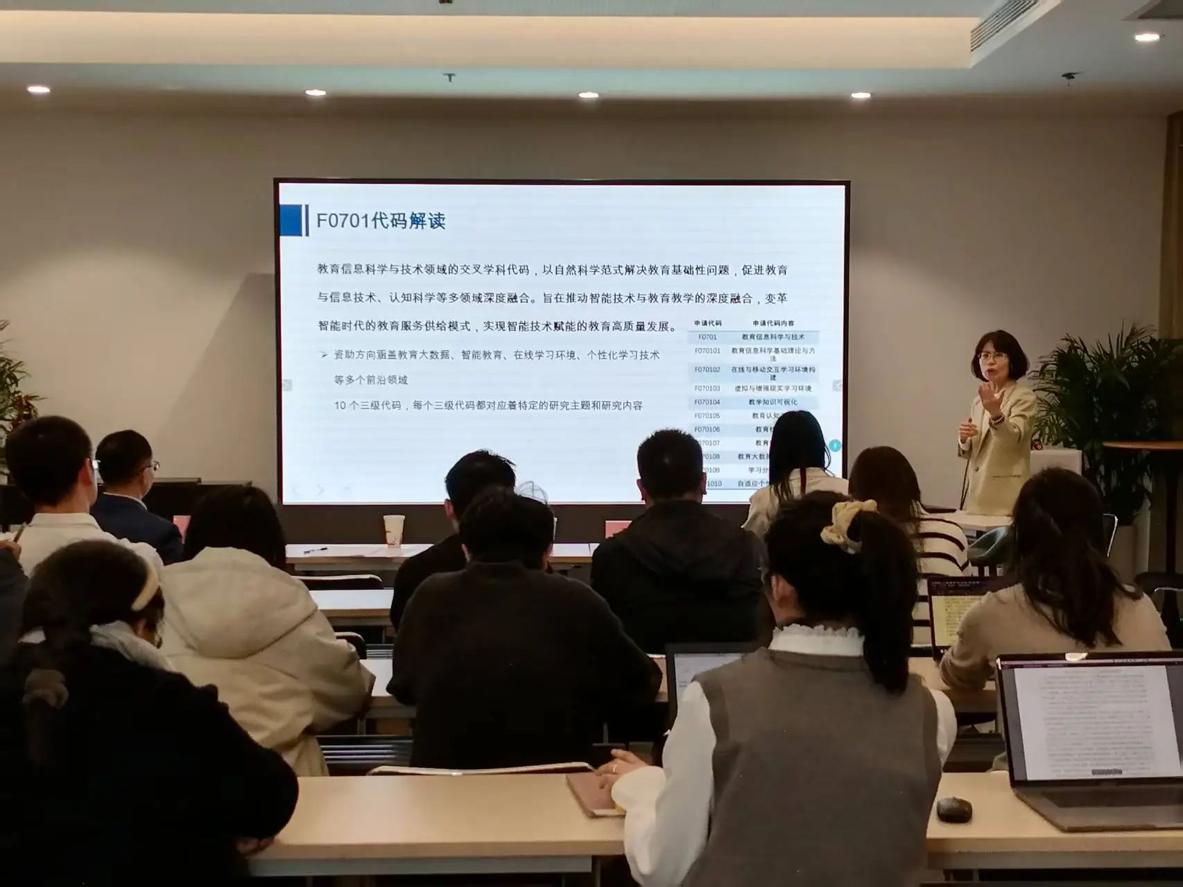 北京師范大學教授李艷燕和中國傳媒大學副教授靳聰分別作專題講座。李艷燕結合自身經驗,從基金代碼解讀、項目選題、申報書寫作技巧、團隊組建等方面對自然科學基金項目的申報與研究進行了具體深入的講解。靳聰從國家自然科學基金概況、面上項目評審程序、申報注意事項等方面作經驗分享。交流環節中,與會人員圍繞自然科學基金項目進行了充分的交流研討,參會教職工向兩位專家介紹了各自的研究選題和研究進展,并就研究過程中遇到的困惑和問題請教專家。