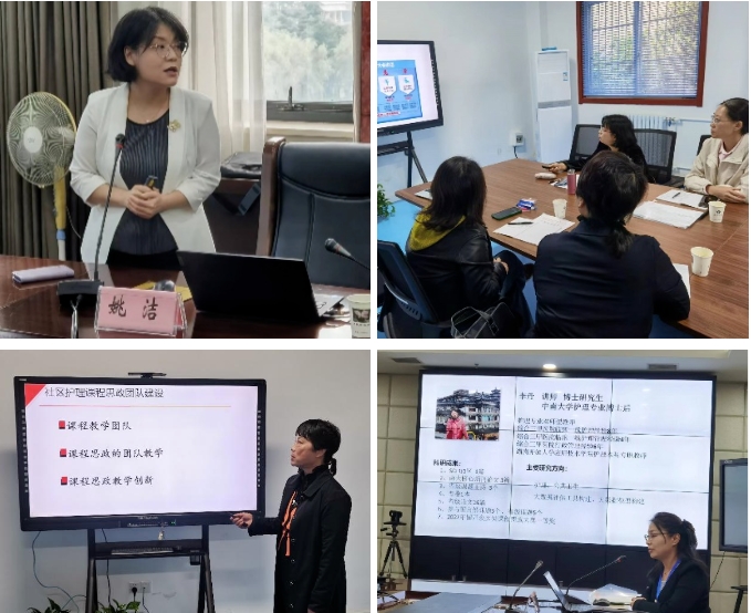 陜西開放大學(xué)護(hù)理學(xué)院史永博院長分享了陜西分部護(hù)理學(xué)專業(yè)思政教學(xué)成果?!渡鐓^(qū)護(hù)理學(xué)》課程思政示范項目教學(xué)團(tuán)隊成員分別圍繞國家開放大學(xué)課程思政建設(shè)工作相關(guān)文件、課程教學(xué)設(shè)計及資源建設(shè)、科研合作等內(nèi)容進(jìn)行熱烈而富有成效的交流和研討。